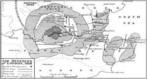 Eventually, the British defences prevailed. The London Air Defence Area was created once the Barrage Defence concept proved outdated as aircraft grew more capable and it was necessary to be able to concentrate force to defeat the enemy. The shaded areas represent the areas marked for anti-aircraft artillery with the patrol lines in between. These command and control arrangements were in place for the Battle of Britain 22 years later except for radar which Dowding brilliantly integrated into the Air Defence system between the Wars. Advanced types such as the SE5a and Sopwith Camel were easily adapted for night-fighting as the Gothas, under increasing pressure, switched from daylight to nocturnal operations. They were later joined by the enormous Riesenflugzeuge (Giant Aircraft): immense multi-engined biplane bombers with wingspans exceeding even the WWII B.17 and Lancaster. These behemoths could carry a far heavier bomb-load than the Gothas and were armed with up to seven defensive machine guns. Not one of them was ever shot down over British soil